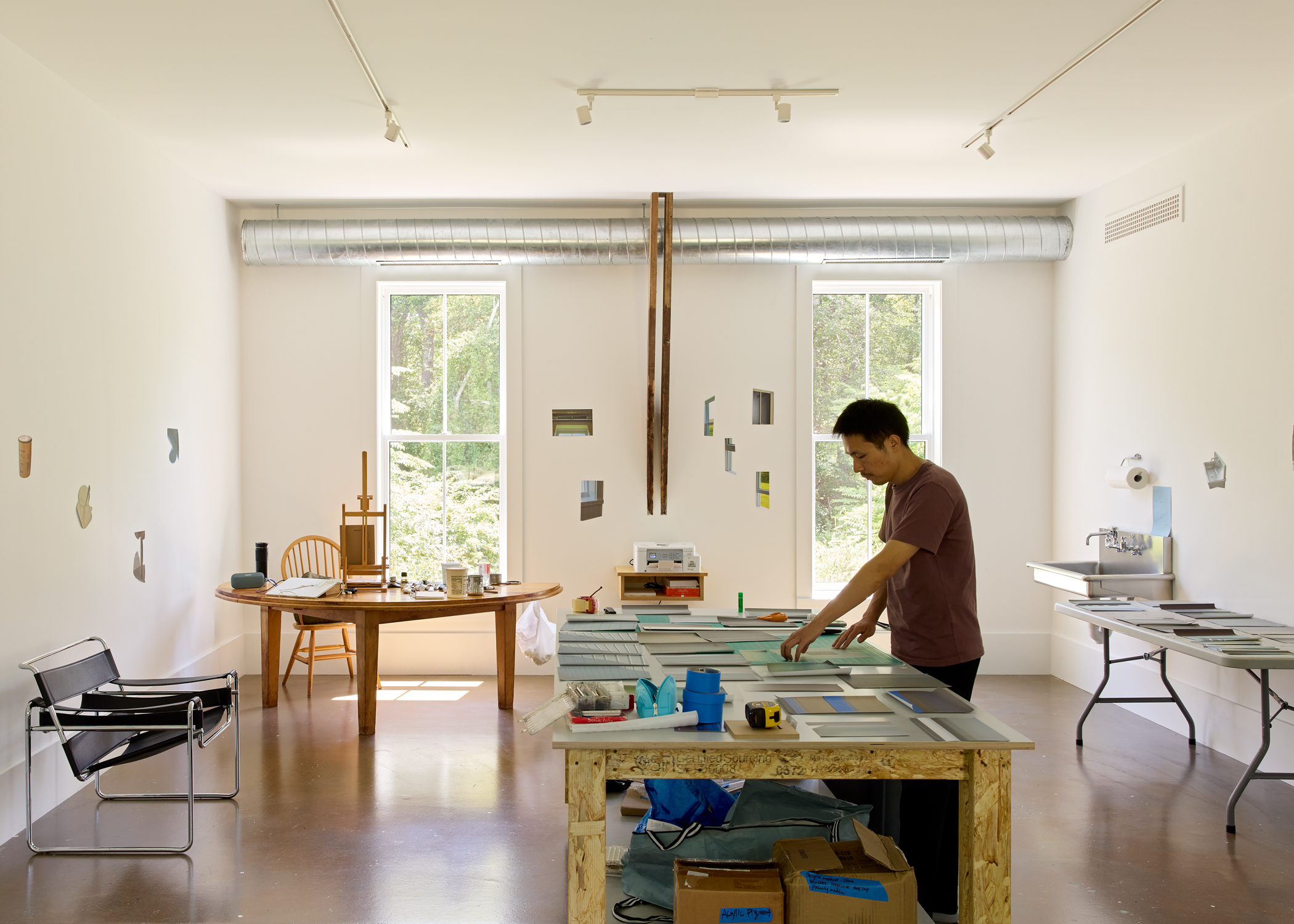The Barn’s straightforward nature gave the artists-in-residence a perfect backdrop to create. Imperfect walls beckoned to be filled with inspiration, samples, and experiments. In our renewal of The Barn, we strove to uphold this invitation to take risks and make messes.