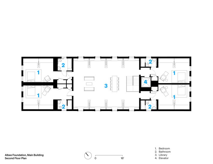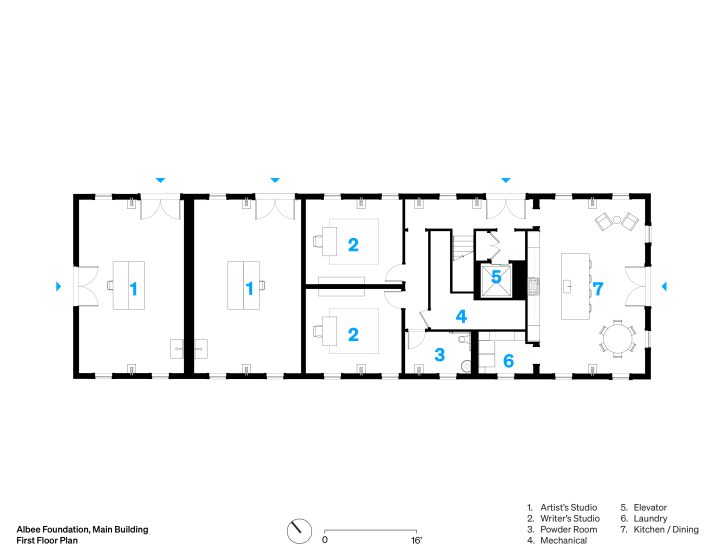Playwright Edward Albee established his eponymous foundation in 1967 to serve writers and artists by providing them space and time to work without disturbance. For the over fifty years since, the Albee Foundation has hosted artists from all walks of life and artistic disciplines in a secluded retreat in Montauk, New York, housed in a beloved former horse stable that dates to the 1920s. TenBerke was charged with rehabilitating the structure—affectionately termed “the Barn”—thus allowing the Foundation to expand its offerings from seasonal to year-round operations.