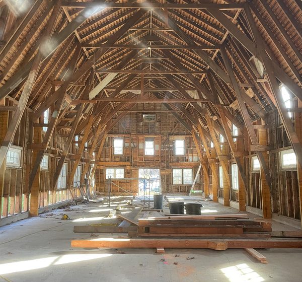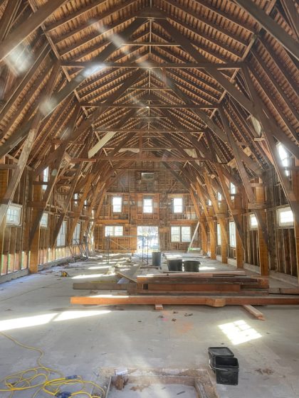 The architectural process itself began with subtraction. We peeled back the layers of the Barn, stripping it down to its wooden frame, exposing its skeletal structure and raw proportions. We carefully kept what we could, reinforcing where needed, and only replacing when required.